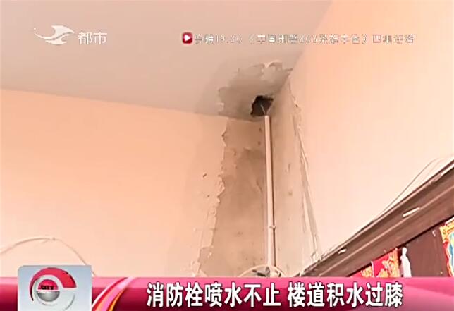 消防栓喷水不止 楼道积水过膝
